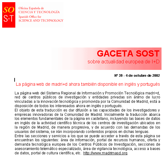 La gaceta SOST, en su número 39, publica un artículo sobre madri+d.