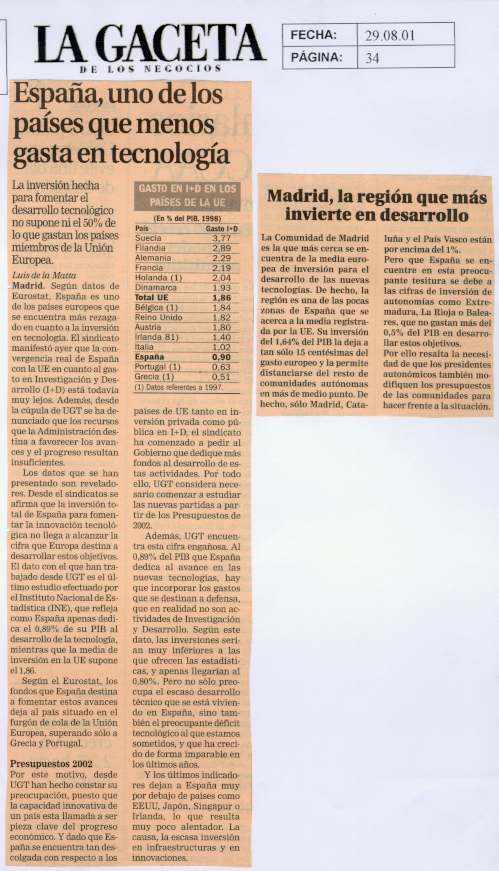 La inversión hecha para fomentar el desarrollo tecnulógico no supone ni el 50% de lo que gastan los países miembros de la Unión Europea.