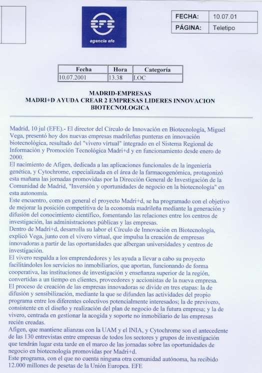El director del Círculo de Innovación en Biotecnología, Miguel Vega, presentó hoy dos nuevas empresas madrileñas punteras en innovación biotecnológica.