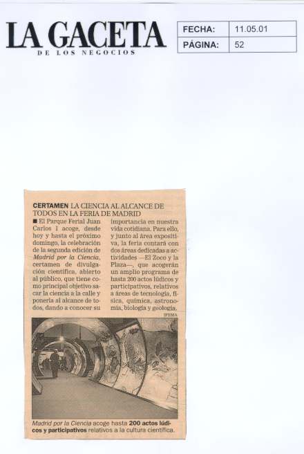 Sacar la ciencia a la calle y ponerla al alcance de todo el mundo es el mensaje que quiere transmitir la Feria Madrid por la Ciencia.