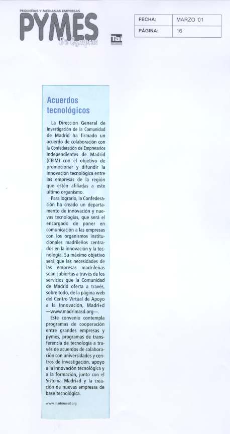 El Sistema de Información y Promoción Tecnológica madri+d es una red promovida por la Comunidad Autónoma de Madrid de centros públicos de investigación y entidades privadas vinculadas a la innovación tecnológica.