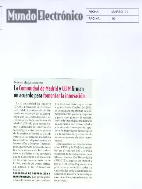 La Dirección General de Investigación de la Comunidad de Madrid ha firmado un acuerdo de colaboración con la Confederación de Empresarios Independientes de Madrid (CEIM).