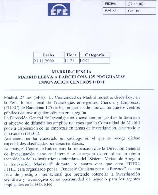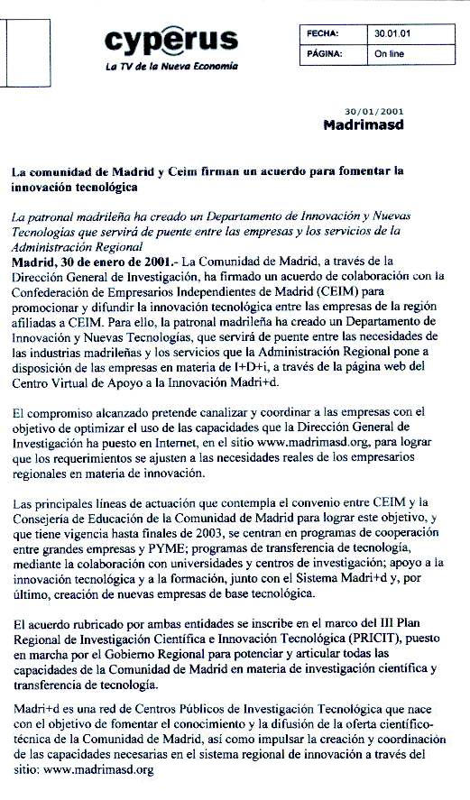 La Comunidad Autónoma de Madrid (CAM) ha puesto en funcionamiento un Sistema de Información Activa que ofrece documentación personalizada sobre actividades elacionadas con I+D+I (Investigación, Desarrollo e Innovación).