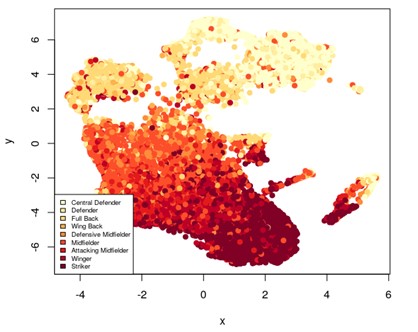 En concreto, la inteligencia artificial fue capaz de distinguir claramente diferentes grupos de jugadores. Y se consiguió sin más información que las estadísticas de sus temporadas anteriores, sin indicar previamente ni su posición, ni pierna dominante ni cualquier otro indicador que pudiera identificar a los jugadores.