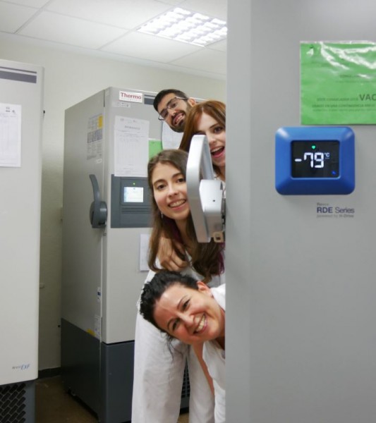 Unidad técnica del Biobanco del IdISSC (de abajo hacia arriba). Elena M Molina Roldán bióloga doctorada por la UCM Coordinadora técnica / Coordinadora de calidad del Biobanco del IdISSC. Marina García Toribio técnico de laboratorio encargada de la línea COVID-19. Sara Centeno Alonso técnico de Anatomía Patológica responsable de las otras líneas no COVID-19. Luis Gonzalez Valle Bioquímico Máster en Neurociencia responsable de la generación de Tissue on a Chip dentro del HUB de organoides. Biobanco perteneciente a la Red Nacional de Biobancos y a la Plataforma ISCIII Biobancos y Biomodelos. Nuestra razón de ser es dar servicio a la comunidad científica con unos criterios de calidad.