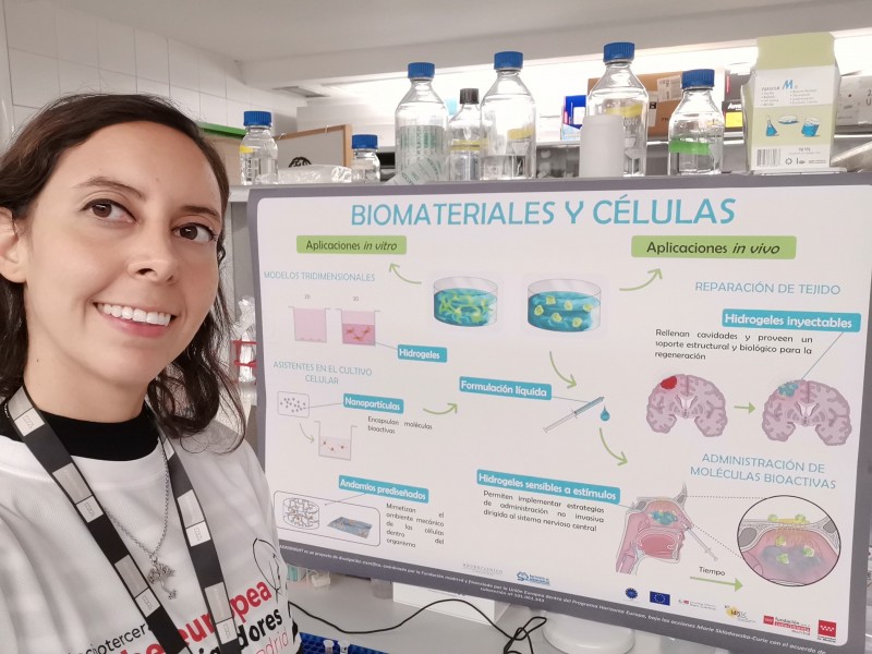 Soy Denise Ojeda, estudiante del Doctorado en Investigación Biomédica de la Universidad Complutense de Madrid. Actualmente estoy adscrita al IdISSC, realizando mi tesis en el Laboratorio de Neurobiología del Hospital Clínico San Carlos. Mi tema de investigación consiste en el diseño de biomateriales termogelificantes para su uso como vehículos en la terapia celular administrada por vía intranasal, específicamente como una propuesta terapéutica para la esclerosis múltiple. Me gusta dar paseos por el campo, patinar y compartir mi fascinación por la ciencia.