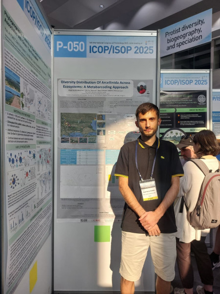 Estudio la diversidad de Arcellinida, un grupo de protistas que habitan en ambientes tan diversos como agua dulce, suelos, turberas e incluso cuevas. A través del metabarcoding, una técnica que detecta el ADN ambiental, estudio su ecología, filogenia y evolución, y su papel como indicadores de salud ambiental. Mi investigación también abordará el efecto de la salinidad, un factor cada vez más relevante por el cambio climático y la agricultura intensiva.