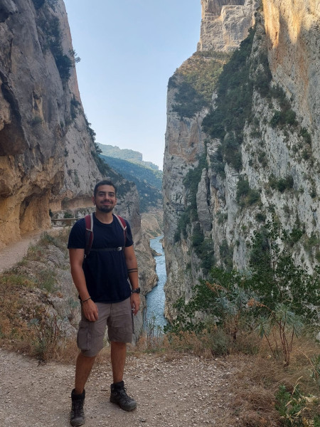 Desde pequeño me fascinaba el mundo invisible de los microbios. Estudié Biología en la Universidad Autónoma de Madrid, donde también hice un máster en Biofísica y otro en Microbiología. Actualmente estoy terminando el doctorado investigando el sistema de secreción tipo VI en Pseudomonas ogarae F113, una especie de "arma molecular" que esta bacteria usa para atacar a otras y sobrevivir en su entorno. Me apasiona descubrir cómo estos mecanismos microscópicos tienen un gran impacto en la naturaleza y en nuestra vida cotidiana. Fuera del laboratorio disfruto del senderismo, el buceo, leer, y pasar tiempo con mis amigos.