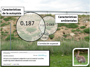 Referencia bibliográfica: Planillo, A., and J. E. Malo. 2018. Infrastructure features outperform environmental variables explaining rabbit abundance around motorways. Ecology and Evolution. DOI: 10.1002/ece3.3709