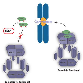 Los investigadores han visto que la enzima mitótica Cdk1 es capaz fosforilar Mis18BP1, evitando así la formación y función del complejo Mis18. Estos resultados proporcionan un valioso avance en nuestra comprensión de cómo las células conservan los centrómeros, esenciales para la distribución del ADN en las dos células hijas idénticas. El Dr. Jeyaprakash Arulanandam, director el trabajo, explica: "Este trabajo demuestra como pequeños cambios reversibles en las zonas de contacto entre complejos proteicos afectan a la interacción entre las diferentes proteínas del mismo y, pueden regular su función celular".
