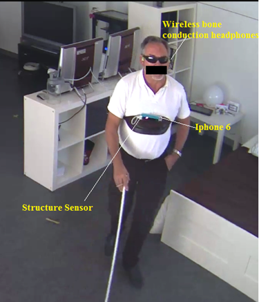 Un equipo de investigadores del Centro de Tecnología Biomédica (CTB) de la Universidad Politécnica de Madrid (UPM) mantiene activa desde hace años la línea de investigación eGLANCE, que les ha llevado a desarrollar una aplicación que permite a las personas ciegas percibir los objetos, personas, y otros elementos de una sala, aunque estos estén más allá del alcance de su bastón. La herramienta, además, les guía a través del mejor camino entre dos puntos, evitando los obstáculos. De este modo, pueden tomar decisiones eficientes en situaciones en las que el estado de localizaciones distantes es un factor determinante, lo que conduce a la disminución del esfuerzo físico y mental extra al que se ven sometidos en sus decisiones cotidianas.