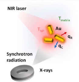 Excitación de nanomateriales basados en oro: las nanopartículas absorben la radiación NIR (“near infrared”) que da lugar a un calentamiento local. Los rayos X actúan como sonda de la temperatura local. Crédito de la imagen: Nano Letters (ACS).