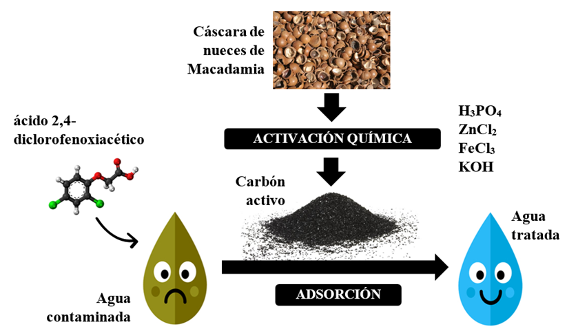 Un equipo de investigadores del Departamento de Ingeniería Química de la Universidad Autónoma de Madrid (UAM), en colaboración con el Laboratorio de Termodinámica Aplicada de la Universidad de Gabes en Túnez, ha llevado a cabo un estudio sobre el potencial de los carbones activos derivados de cáscaras de nueces de macadamia para la eliminación del ácido 2,4-diclorofenoxiacético, un pesticida de uso común, presente en el agua.
