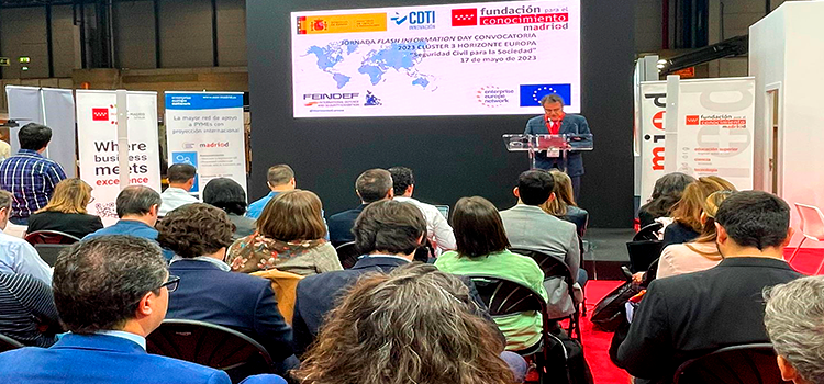 Los pasados días 17, 18 y 19 de mayo de 2023, la Fundación para el conocimiento madri+d coordinó la participación de la Comunidad de Madrid en la Feria Internacional de Seguridad y Defensa (FEINDEF) 2023, la única feria en España especialmente dedicada a mostrar las últimas innovaciones existentes en los sectores de la defensa y la seguridad a escala internacional.