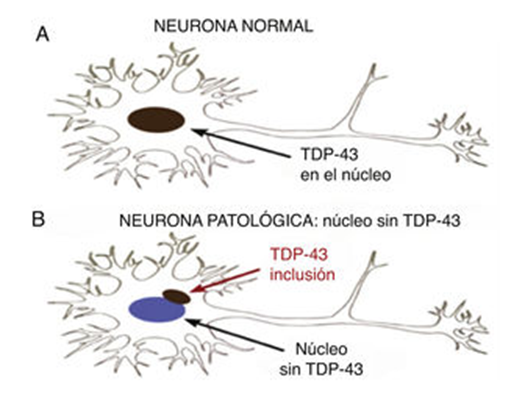 En concreto, se probaron fármacos que inhiben específicamente un mecanismo de regulación de la actividad de las proteínas: la fosforilación de TDP-43. La TDP-43 es una proteína crítica para las células nerviosas, y su forma patológica –mal plegada y con formación de agregados proteicos– se encuentra frecuentemente hiperfosforilada, es decir, con grupos fosfato extra.