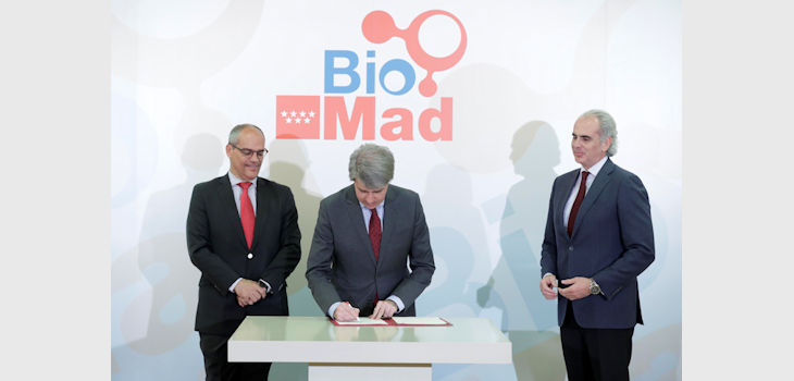 El presidente de la Comunidad de Madrid, Ángel Garrido, ha firmado hoy en la Real Casa de Correos el protocolo de creación de BioMad (Bioregión de Salud y Bienestar), una entidad que agrupará a las instituciones públicas y empresas de la investigación, el desarrollo y la innovación (I+D+i) sanitarias para potenciar este sector en la región y atraer talento e inversión a nivel nacional e internacional.