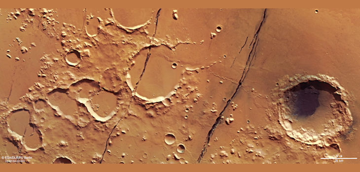 Tectónica reciente en Marte 24.09.2018 Estas llamativas fisuras se deben a la acción de fallas que resquebrajaron la superficie del planeta hace menos de diez millones de años.
