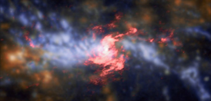 Estudian el núcleo de la galaxia NGC 5643, de tipo Seyfert y descubren un disco nuclear, que rota y oscurece el núcleo activo de la galaxia, así como grandes cantidades de gas ionizado que son expulsadas a ambos lados de la galaxia.