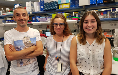 De izquierda a derecha, Alberto Cascón, Mercedes Robledo y Laura Remacha, autores del artículo y miembros del Grupo de Cáncer Endocrino Hereditario del CNIO./ CNIO