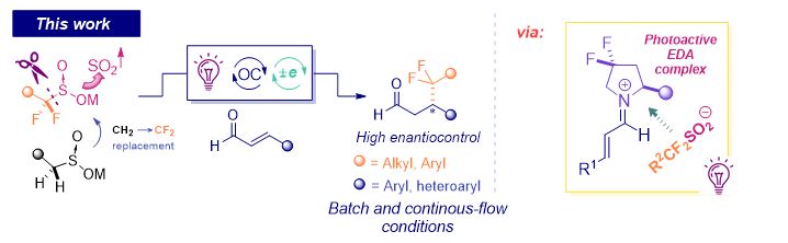 Rodríguez, R.I.; Sicignano, M; Alemán, J. 2022. Fluorinated Sulfinates as Source of Alkyl Radicals in the Photo-Enantiocontrolled β-Functionalization of Enals. Angewandte Chemie International Edition 61, e202112632.