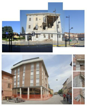 Edificios inhabitables tras sufrir daño estructural en el terremoto de Emilia Romagna, Italia 2012.