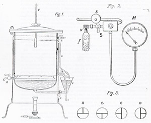 Pero donde S. Cambronero brilló fue en el terreno del aparataje utilizado en los procesos de elaboración industrial y pseudoindustrial de ampollas inyectables, principalmente en las operaciones de esterilización y llenado. En el terreno de la esterilización de inyectables son de destacar la ultrafiltración, los tubos o ampollas empleados como testigos de esterilización y, sobre todo, su autoclave “Ideal, Sistema CGS” –que corresponde a las iniciales de su nombre-, una modificación y perfeccionamiento útil e interesante del autoclave de Chamberland. Sus contribuciones a la técnica farmacéutica del llenado de ampollas son numerosas y, en ocasiones, brillantes; sencillos aparatos, que conseguían simplificar al máximo el material de laboratorio y todos los procesos relativos a la técnica operatoria conducente a la elaboración de esta forma farmacéutica, pero aptos para la producción a gran escala. Sus ingenios demostraron a sus colegas de la Farmacia civil que también podían elaborarse inyectables al por mayor, únicamente, con el aparataje existente en cualquier botica y sin necesidad imperiosa de adquirir costosas máquinas de vacío, como las utilizadas por las grandes industrias del medicamento.
