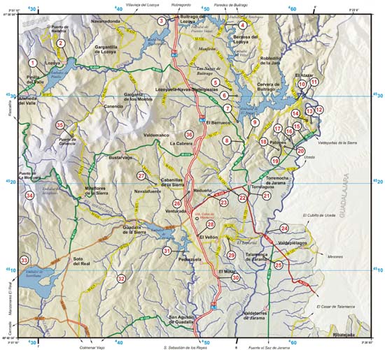 Recorridos para realizar en vehículo propio, con paradas en puntos de especial interés geológico para conocer las principales rocas y sedimentos que forman el sustrato de la Comunidad de Madrid, y para comprender cómo influye cada tipo de roca en la formación del paisaje que vemos.