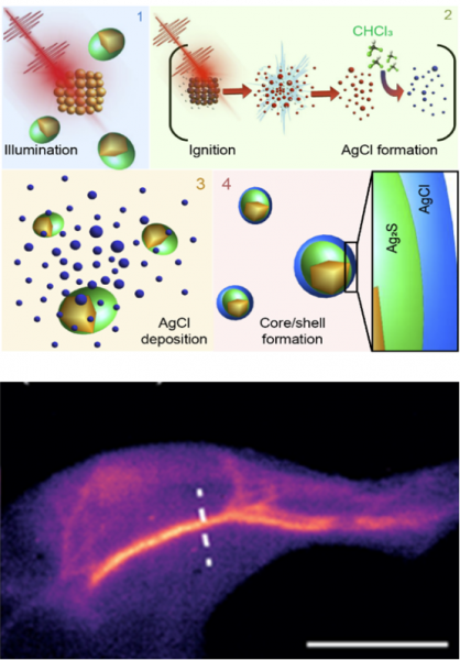 El equipo ha logrado mejorar el rendimiento de nanopartículas luminiscentes mediante su irradiación con laseres ultrarápidos y ultraintensos. Estos láseres producen reacciones químicas muy rápidas (en el orden de 10-13 segundos), las cuales crean una capa nanométrica protectora alrededor de la nanopartícula que aumenta más de dos órdenes de magnitud su intensidad luminiscente.