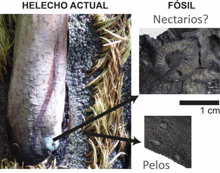 “La corteza de los tallos muestra unas marcas o tubérculos que muy probablemente se traten de zonas donde se habrían insertado unos pelos fuertes y duros que, en helechos actuales, protegen a la planta en caso de incendio. Estos pelos se queman lentamente, dando tiempo a que el fuego se extinga antes de llegar a las partes vitales de la planta y dañarla de forma severa”, explica Blanco Moreno.