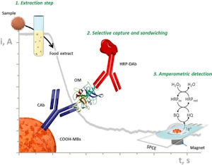Dichos inmunocomplejos tipo sándwich se forman sobre la superficie de partículas micromagnéticas que se capturan sobre electrodos desechables, "similares a los que usa la gente diabética, y proporcionan una respuesta amperométrica proporcional a la concentración de ovomucoide en la muestra", explica José Manuel Pingarrón, coautor de correspondencia del trabajo publicado.
