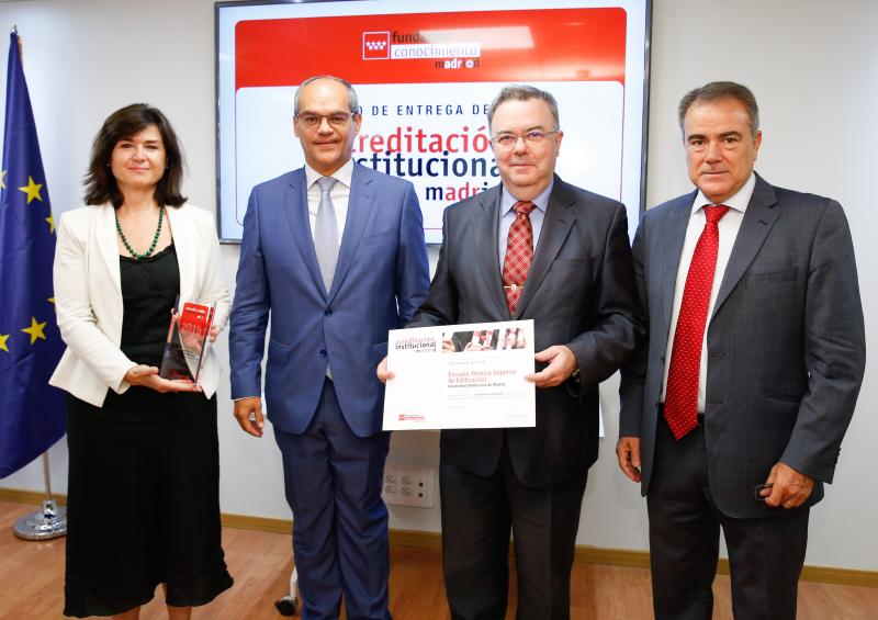 La Fundación para el Conocimiento madri+d, órgano responsable de asegurar la calidad de la enseñanza universitaria en nuestra región, ha hecho entrega hoy de sus primeras Acreditaciones Institucionales a dos centros de la Universidad Politécnica de Madrid (UPM).