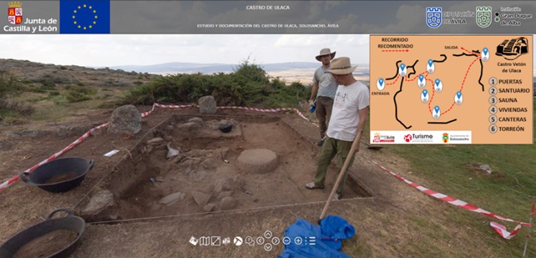 En cualquier caso, las visitas virtuales tienen un enorme interés debido a las múltiples posibilidades que ofrecen a sus potenciales usuarios, como proporcionar información general contextualizada del yacimiento (con el objetivo de que el visitante pueda comprender de una manera fácil su historia, entorno y peculiaridades) o dar visibilidad a los restos arqueológicos presentes en los yacimientos. Estos restos, en ocasiones, se vuelven a cubrir una vez finalizada la excavación con el fin de preservarlos, imposibilitando así la visita de los mismos por parte del público. En el caso de Ulaca esta circunstancia se ha solventado a través de la inclusión de varios panoramas de la excavación realizada en una de las zonas. Como comentan los miembros del equipo, “este aspecto es fundamental para que la experiencia del visitante virtual no se limite única y exclusivamente a la contemplación, sino que se produzca una aproximación (aunque somera) al proceso de excavación, que, además, debe ser una de las bases para impulsar la práctica turística basada en el patrimonio arqueológico”.